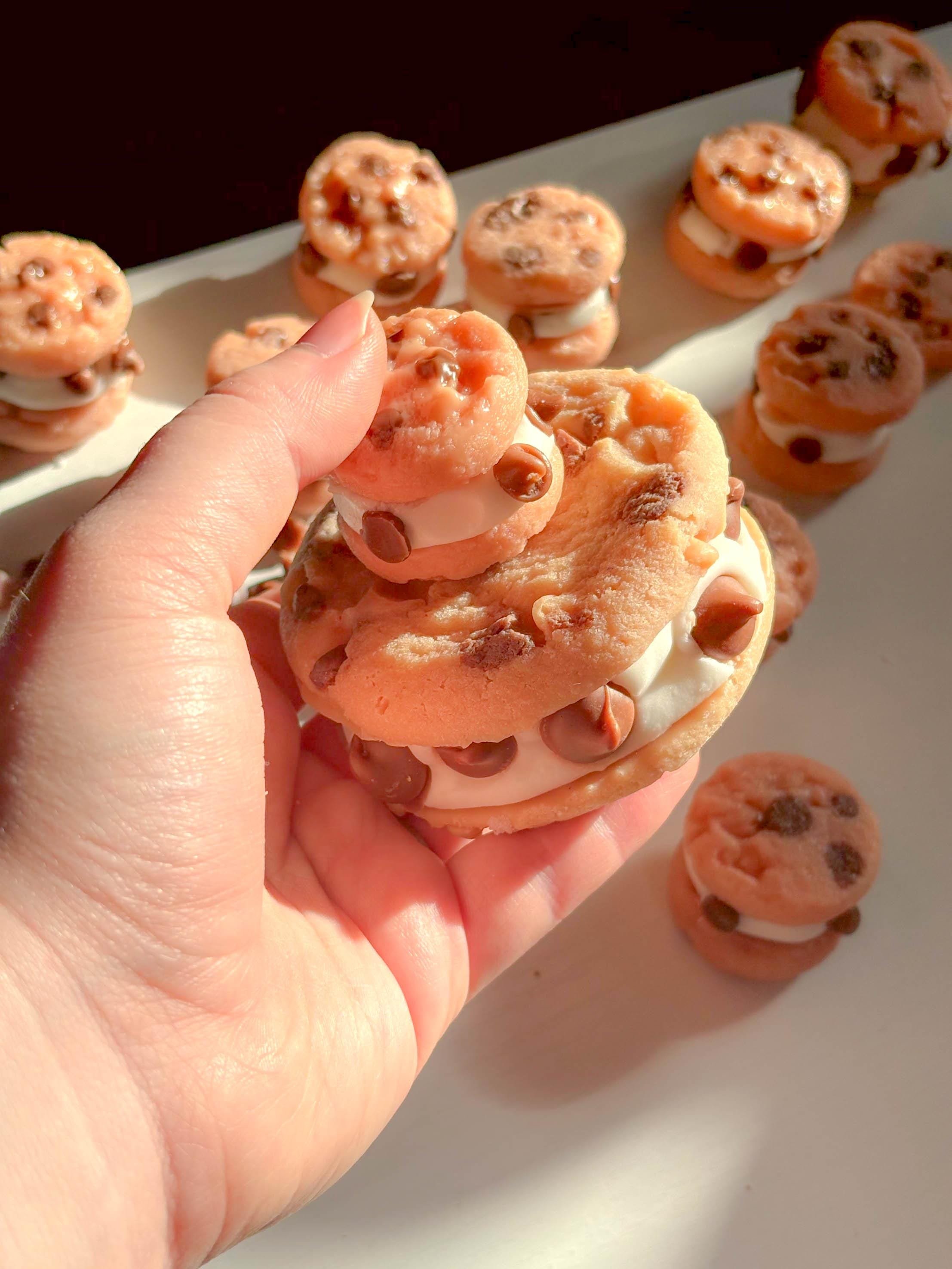 🍓Smells like a chocolate chip cookie ice cream sandwich! the mini ones are approximately 2 by 2 inches and the big ones are 4.5 inches by 3 so they're really big