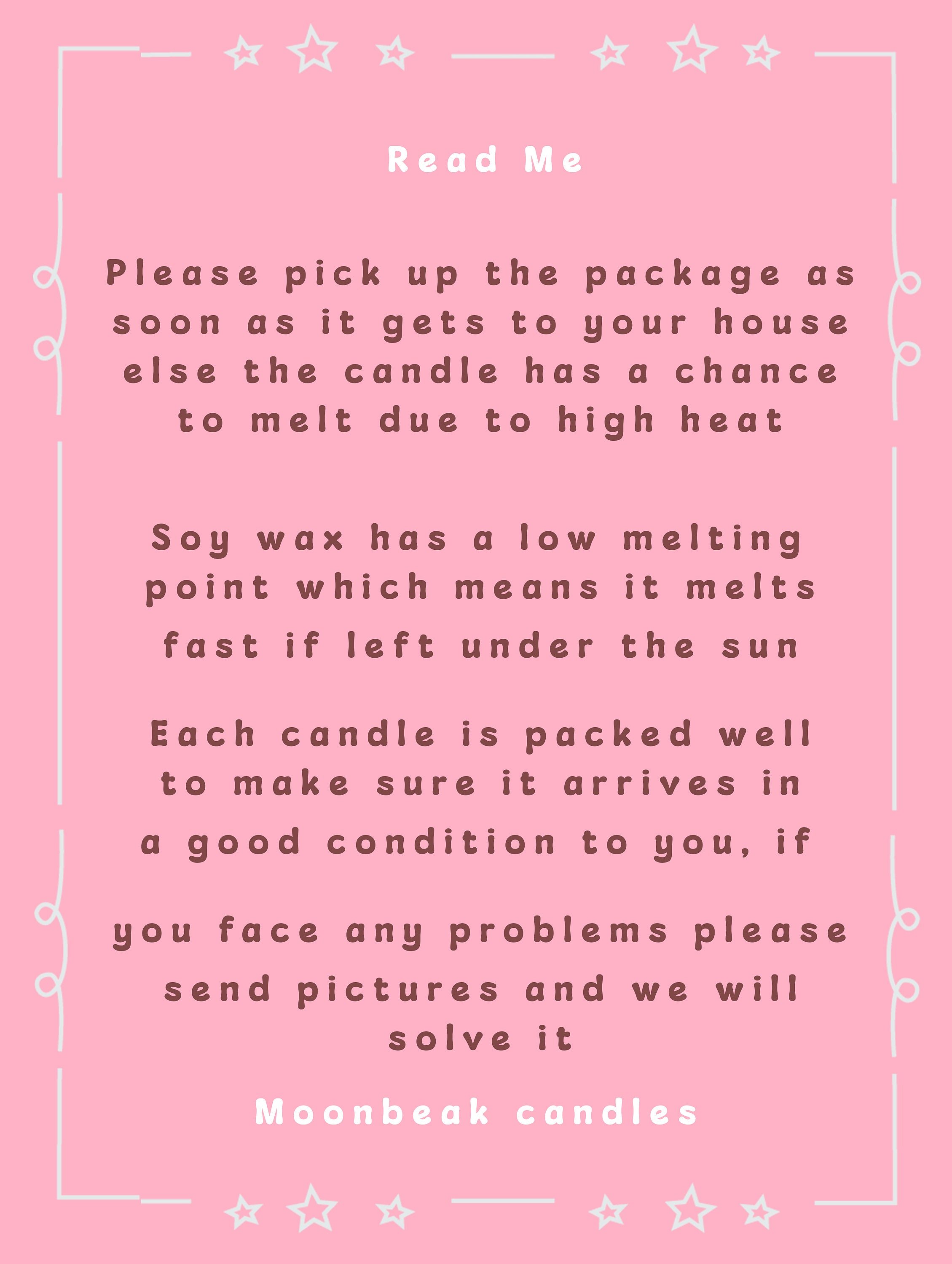 Note: in Hot summer weather the candle might melt if kept in the post office/ warehouse please keep checking the tracking number and collect the candle if it is not delivered after 4-5 days