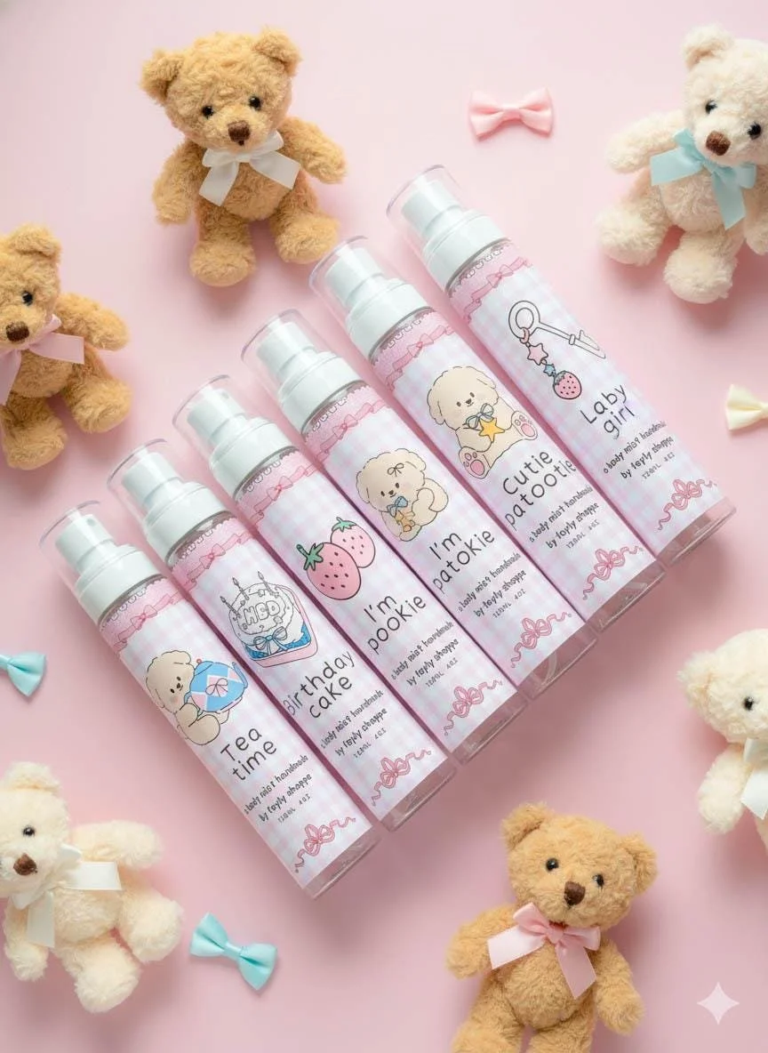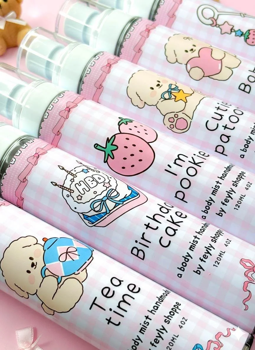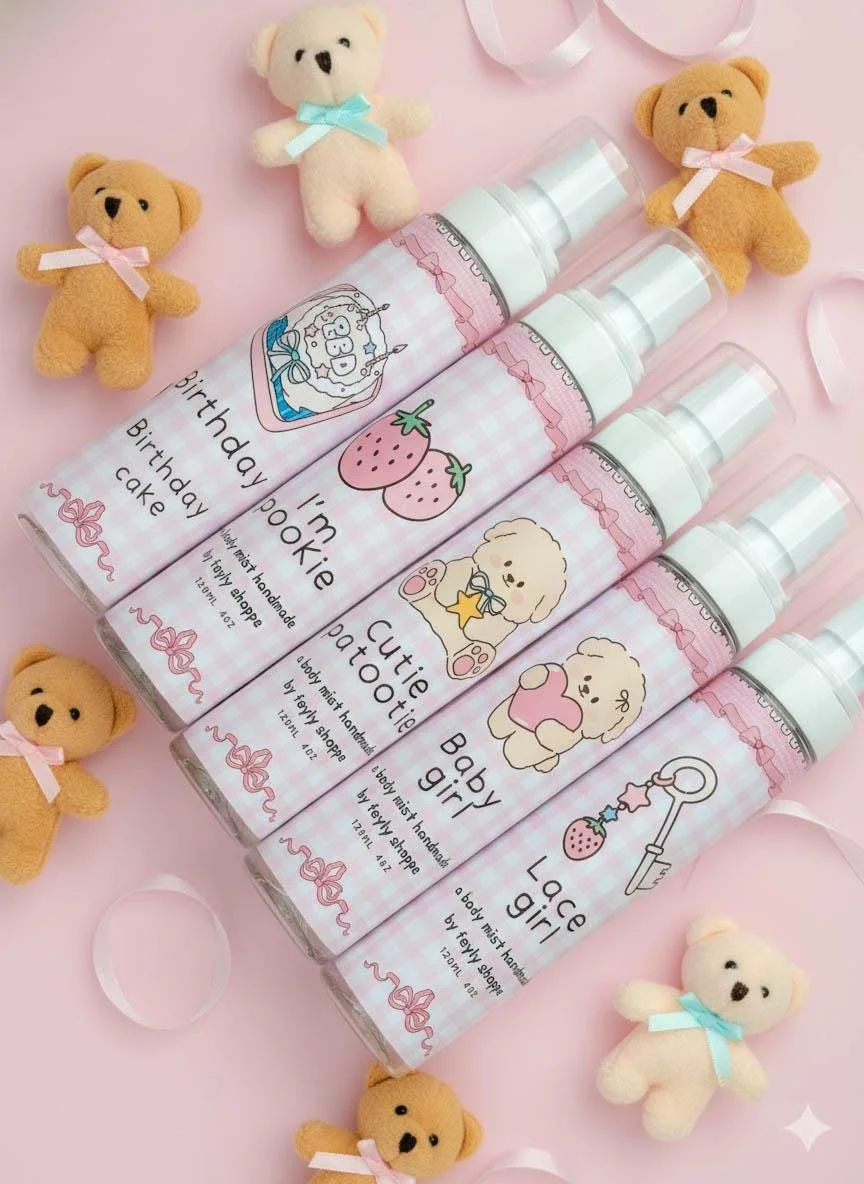 All / Perfume Clear Filters Categories All Seasonal Wax Melts Perfume Dessert Candles All jar candles Filter Clear Filter Cute gourmand perfume from $12.00 View Options Hydrating oil for sensitive scalp $35.00 View Options Zelda strawberry chocolate perfume from $12.00 Select pcs Full size Sample Add To Cart Added! Zelda Lon lon milk cinnamon apple perfume from $12.00 Select pcs Full size Sample Add To Cart Added! Kawaii gourmand strawberry lychee perfume from $12.00 Select Size sample(3ml) Full size clear Add To Cart Added! Coquette soft girl perfume from $12.00 View Options Zelda Navi vanilla floral perfume from $12.00 Select pcs Full size Sample Add To Cart Added! Cute bunny peach milk tea perfume from $12.00 Select Size Sample size 3ml Full size 50ml old bottle 30ml Add To Cart Added! Kawaii condensed milk caramel perfume from $12.00 Select Size sample(3ml) Full size clear Add To Cart Added! Cute bunny vanilla buttercream perfume from $12.00 Select Size Sample size(3ml) Full size 50ml Old bottle 30ml Add To Cart Added! Kawaii marshmallow lemon pear cream perfume from $12.00 Select Size sample(3ml) Full size clear Add To Cart Added! Kawaii toasted marshmallow perfume from $12.00 Select Size sample(3ml) Full size clear Add To Cart Added! Coquette fruity body mist $15.00 Flower girl Sweet pea Hey boo Rose water Cozy day Tea time Add To Cart Added! Zelda raspberry milk perfume from $12.00 Select pcs Full size Sample Add To Cart Added! Zelda korok green floral perfume from $12.00 Select pcs Full size Sample Add To Cart Added! Kawaii gourmand body mist $15.00 Cupcake Cheesecake Banana split Matcha cake Lemon loaf Cream soda Honey yogurt Fruit sandwich Add To Cart Added! Kawaii ultra gourmand body mist $15.00 Date Me Star dust Magic cloud Sweet Sun Add To Cart Added! Cute gourmand bunny body mist $15.00 Fluffy bunny Snow bunny Bunbun bunny Add To Cart Added! Zelda tingle cotton candy perfume from $12.00 Select pcs Full size Sample Add To Cart Added! Kawaii cartoon gourmand musky perfume from $12.00 View Options Zelda Tonic strawberry pound cake candle from $12.00 Select pcs Full size Sample Add To Cart Added! Kawaii gourmand and fruity body mist $15.00 Pistach-awh Im pookie Cutie patootie Baby girl Lace girl Birthday cake Add To Cart Added! Cute froggy alcohol free hair perfume $15.00 Lemon cheesecake Cinna milk Soft n musky Banana parfait Sugar apple Marshmallowz Berry n milk Peach party Rose delight Fireflies Orange water Melon jelly Add To Cart Added! Cute perfume oil for hair and body $25.00 View Options Cute bunny strawberry pound cake perfume from $12.00 Select Size Full size 50ml Sample size(3ml) old bottle 30ml Add To Cart Added! No results found No results match your search. Try removing a few filters.